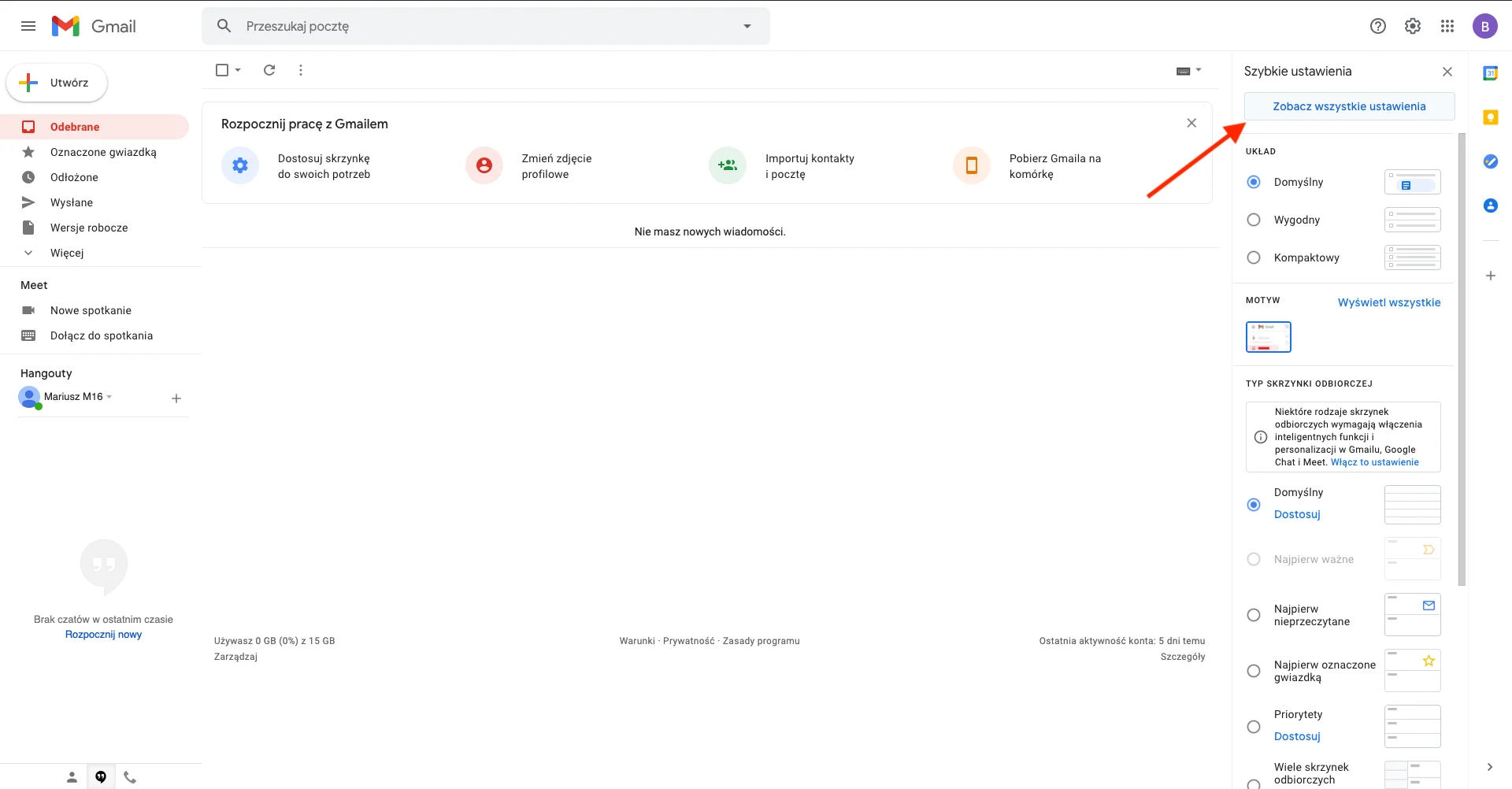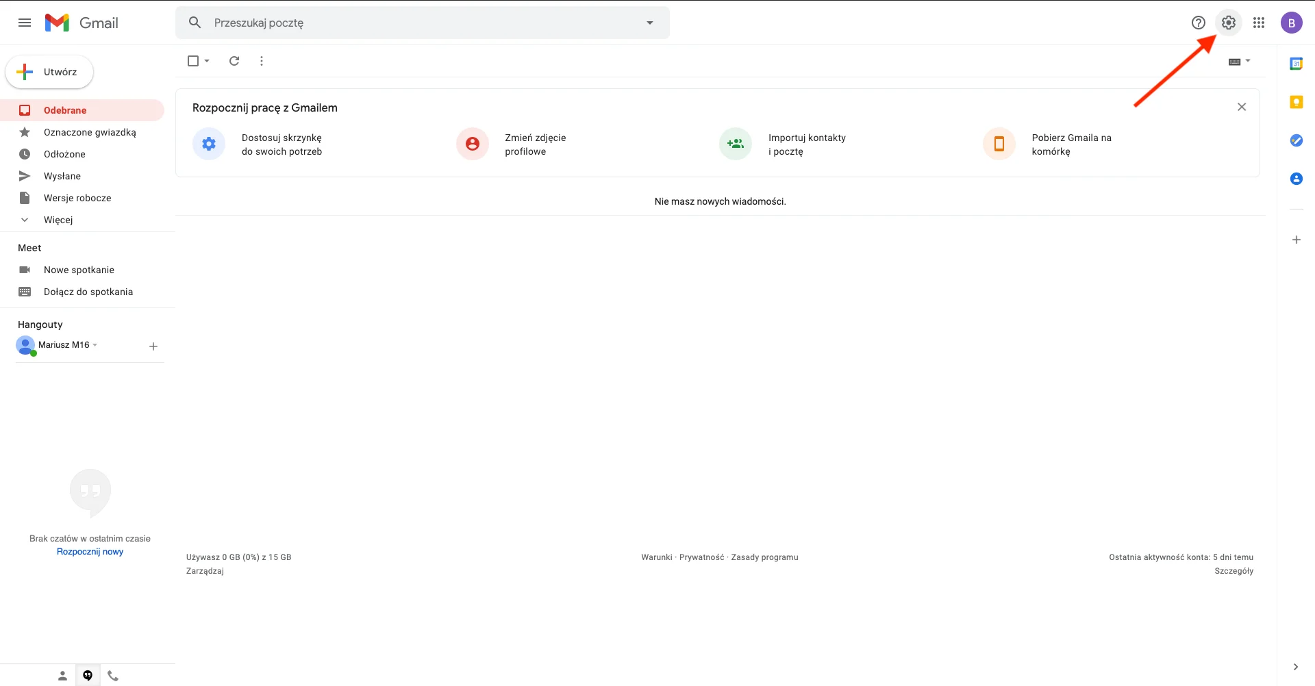- Nejprve se po přihlášení do Gmailu vpravo klikněte na ozubené kolo.