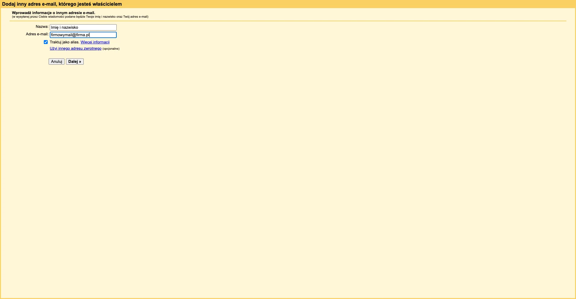 - V sekci „odesílat e-mail jako” vyberte „přidat jinou e-mailovou adresu”. Pokud tuto stejnou poštu konfigurováte znovu, je lepší nejprve odstranit e-mail pomocí tlačítka „odstranit” vpravo. Okamžitě vás ujišťuji, že to neodstraní e-maily, které jsou na serveru! 😉 Máme dvě cesty pro přidání pošty. Některé domény mají nainstalovaný certifikát SSL pro poštu, jiné nikoli. Samozřejmě představím obě možnosti, a pokud nevíte, kterou vybrat, můžete vyzkoušet obě metody, nebo nám napište — rádi poradíme.